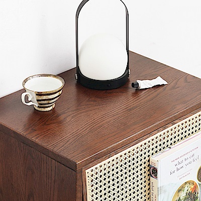 hoi! 源氏木語布拉格藤編胡桃色橡木實木雜誌櫃 H84M05 (H014313355)