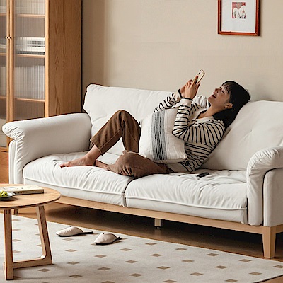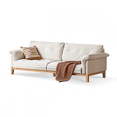 源氏木語慕斯奶油風實木小三人座布沙發 S03227 (H014375974)