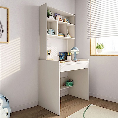林氏木業夢想兒童0.8M附書架學習書桌 LH068-白色 (H014338923)