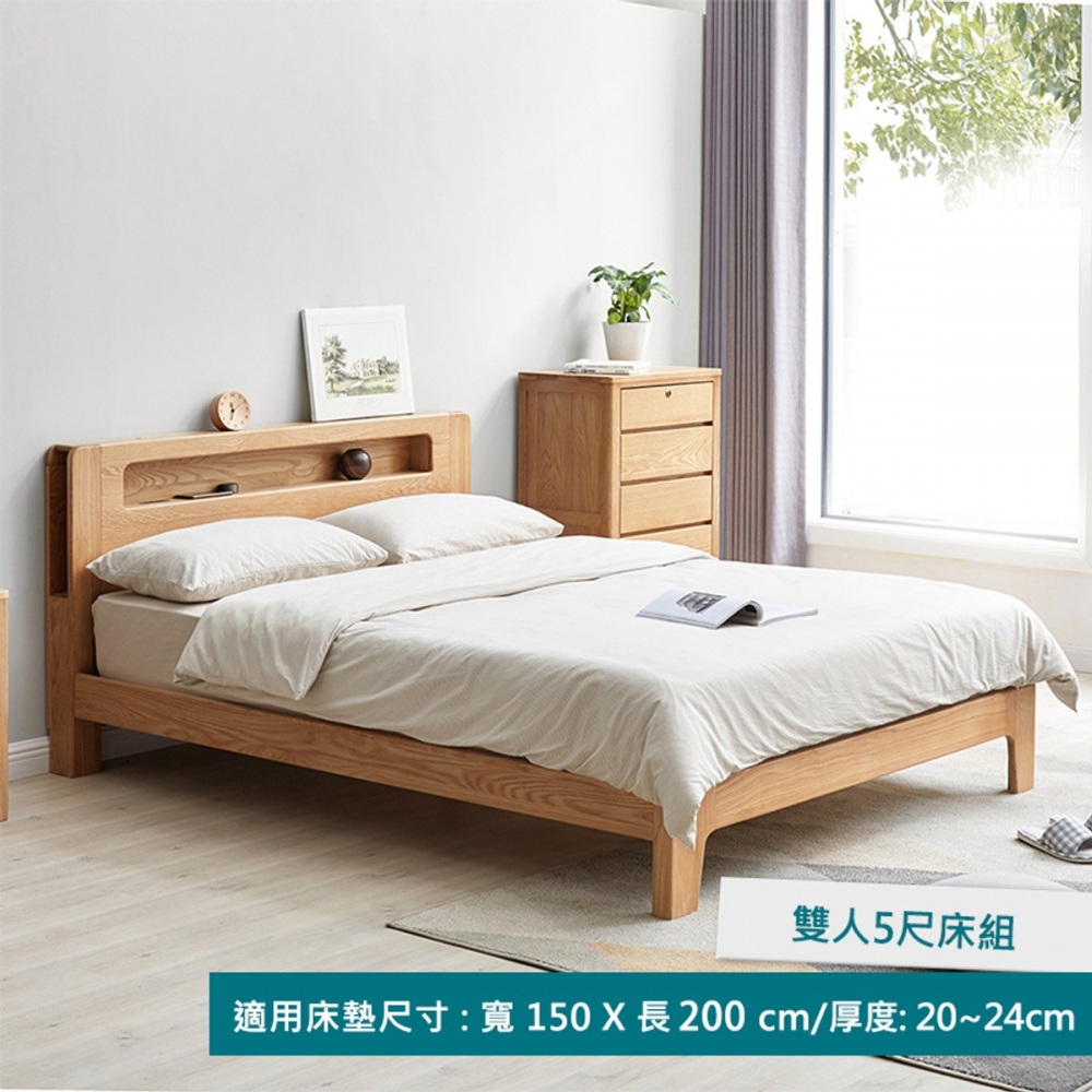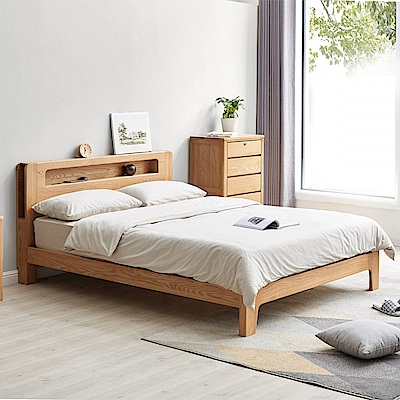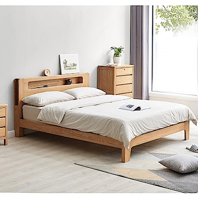 hoi! 源氏木語西雅圖橡木多功能雙人 150x200 夜燈床架 Y90B13 (H014299073)