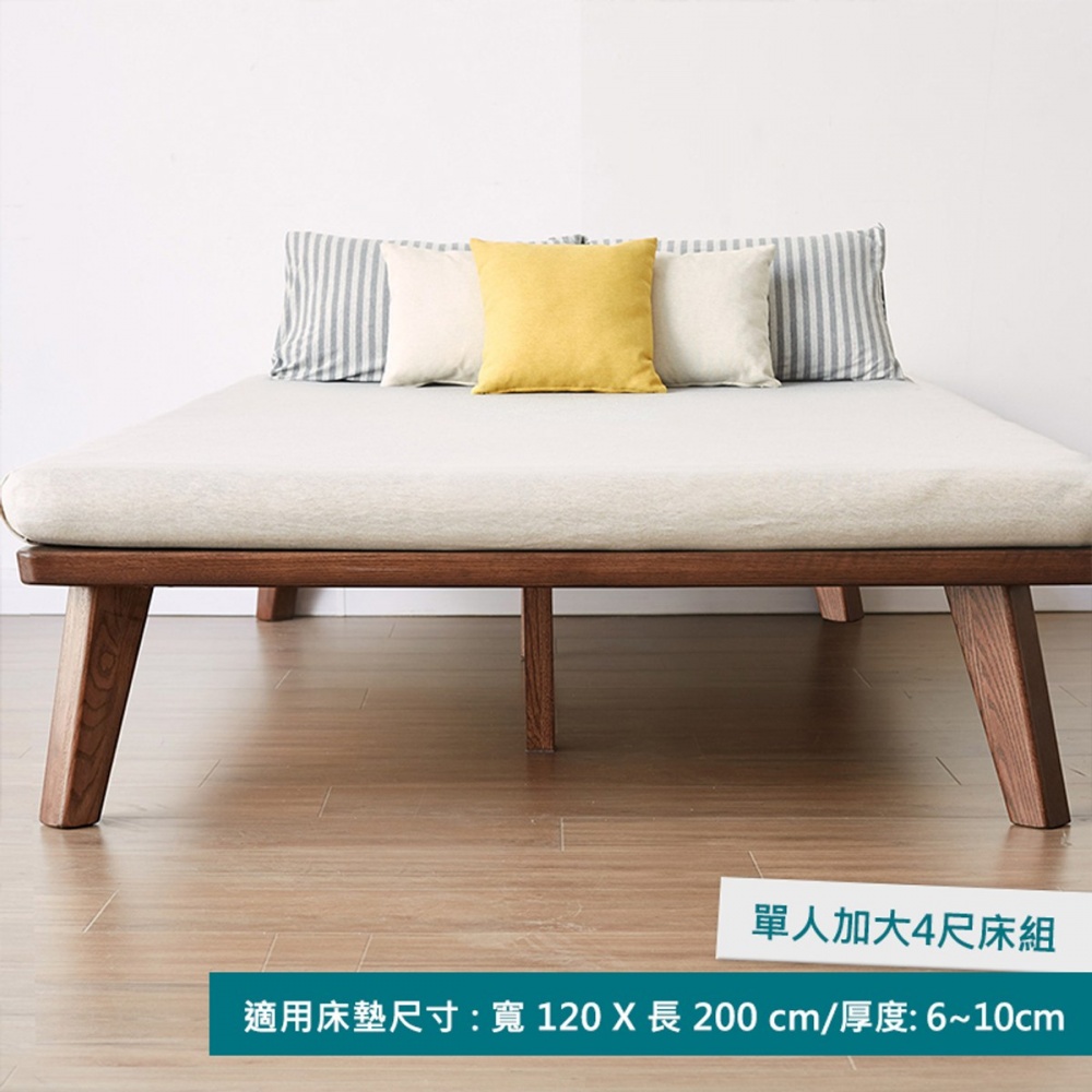 hoi! 源氏木語柏林橡木胡桃色無床頭120x200單人加大4尺高鋪床架 B6807 (H014317342)