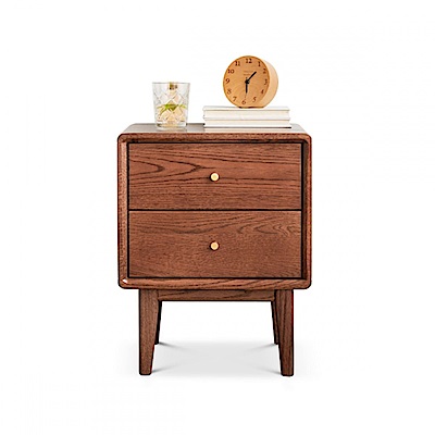 源氏木語布拉格橡木胡桃色雙抽床頭櫃0.4M H84A01 (H014384479)