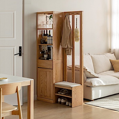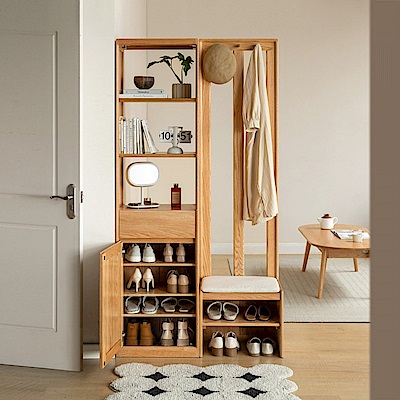 源氏木語布拉格橡木原木色玄關置物櫃穿鞋椅1M Y84L01 梨白色 (H014382602)