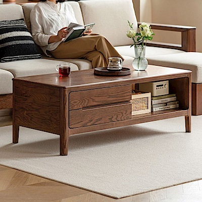 源氏木語西雅圖胡桃色橡木三抽1M實木茶几 Y9141 (H014384476)