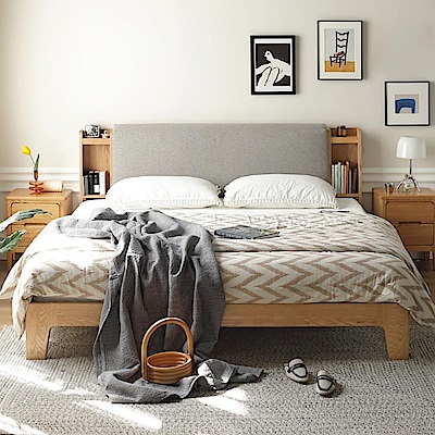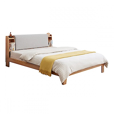 源氏木語西雅圖橡木布靠墊雙人150x190夜燈床架 Y90B08 亞麻灰 (H014380310)