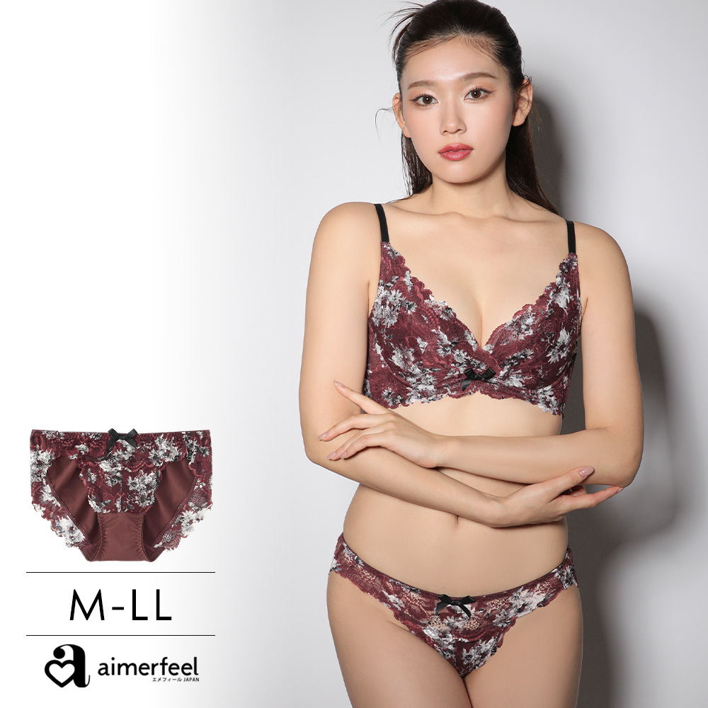 aimerfeel 黑白花卉交叉蕾絲 三角內褲-605921-BO