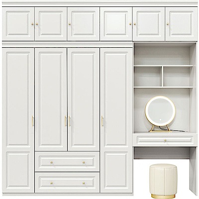 林氏木業北歐簡約純白金色把手四門衣櫃 JO11D (附化妝邊櫃及頂櫃) (H014359819)