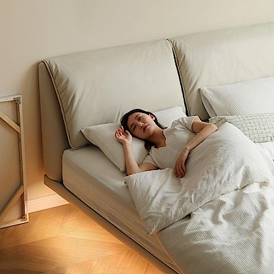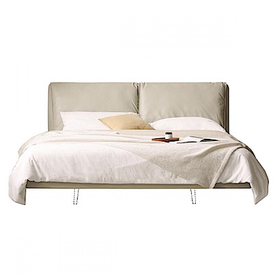 源氏木語大象耳朵真皮雙人加大180x200懸浮床架 S07B67 米白 (H014376590)