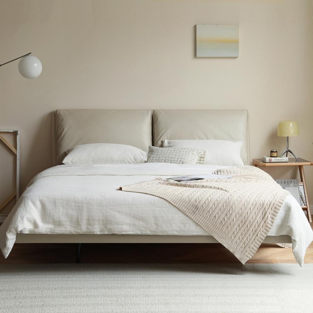 源氏木語大象耳朵真皮雙人加大180x200懸浮床架 S07B67 米白 (H014376590) product image 1