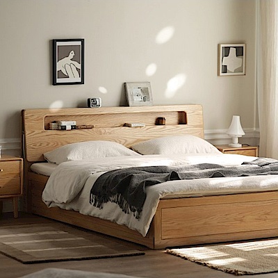 源氏木語西雅圖橡木斜靠雙人150x200夜燈掀床架(高鋪) Y90B38 (H014371093)