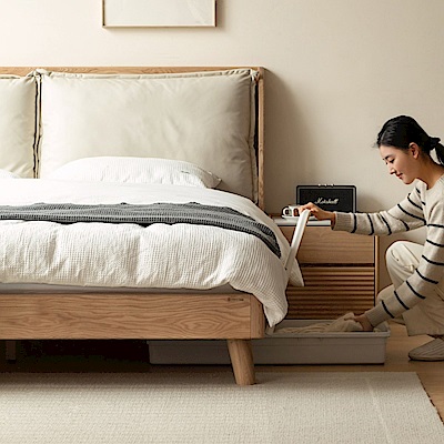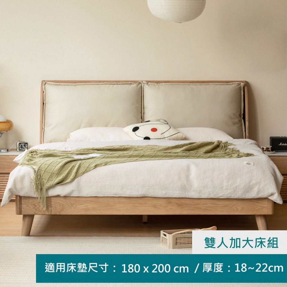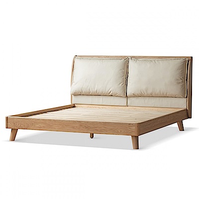 源氏木語奶油風真皮背靠雙人180x200實木床架 Y231B01 米白色 (H014368371) product image 1