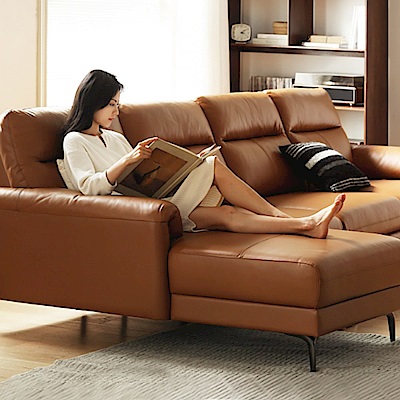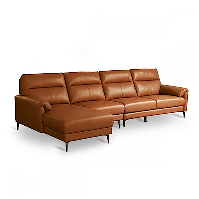 源氏木語日暮頭層牛皮右L型四人座皮沙發 S03140 棕黃 (H014371117)