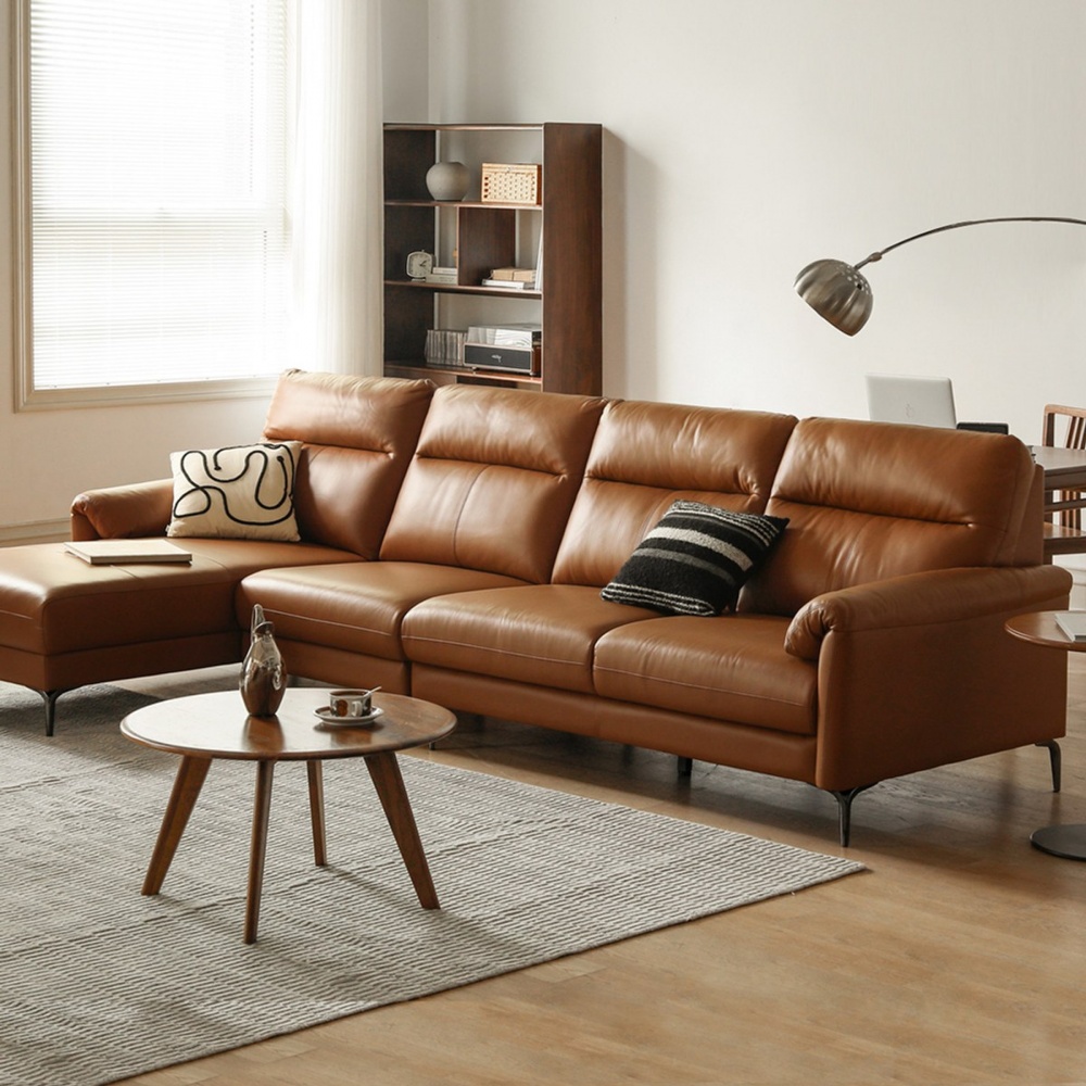 源氏木語日暮頭層牛皮右L型四人座皮沙發 S03140 棕黃 (H014371117) product image 1