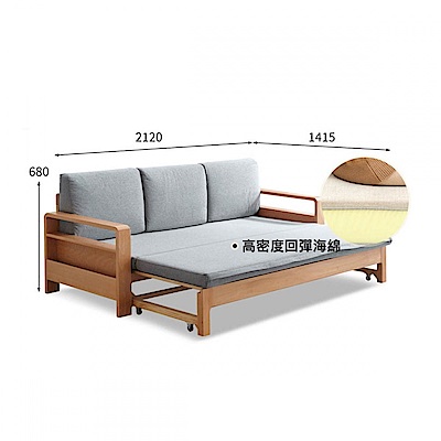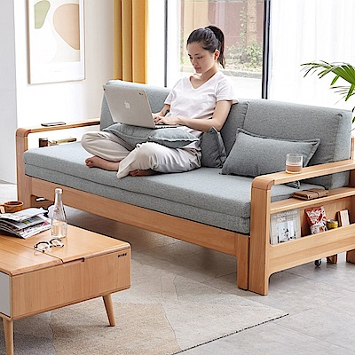 源氏木語橡木原木色多功能儲物三人座布沙發床 Y28H24 霧灰色 (H014364506)