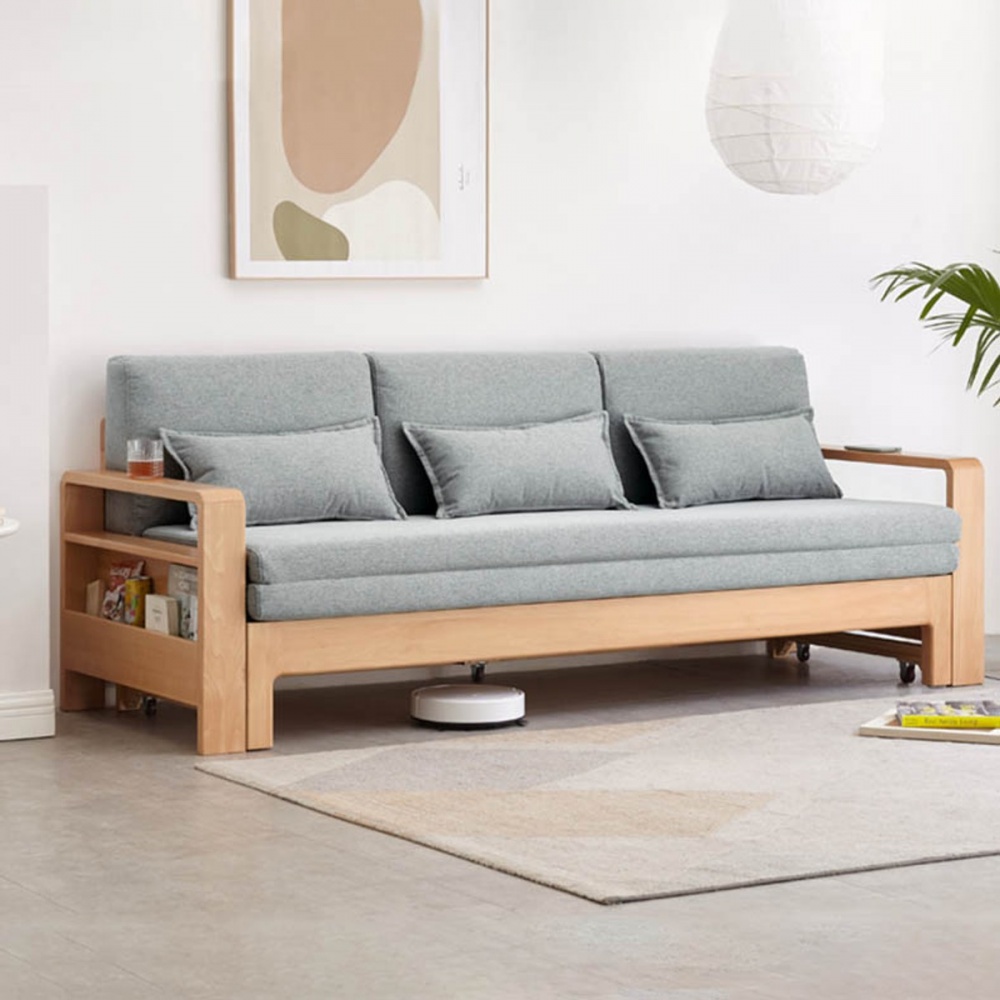 源氏木語橡木原木色多功能儲物三人座布沙發床 Y28H24 霧灰色 (H014364506) product image 1