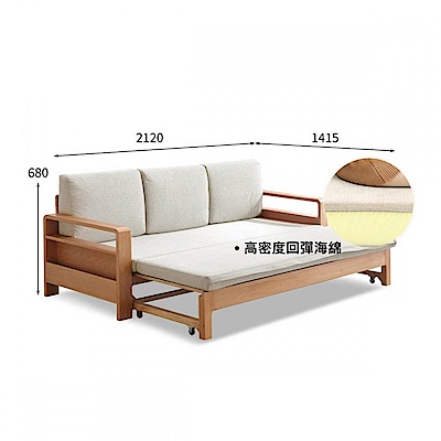 源氏木語橡木原木色多功能儲物三人座布沙發床 Y28H24 米白色 (H014364507)