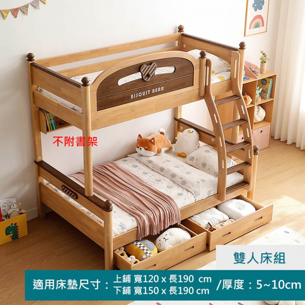 林氏木業原木風實木雙人150x190雙層兒童床架 LH064 (附床抽屜) (H014361650)