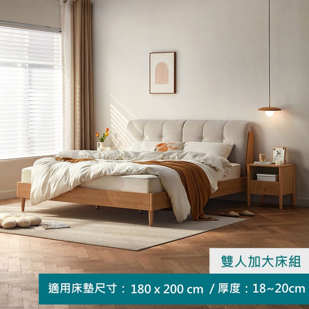 林氏木業北歐原木風床頭靠墊加大雙人180x200床架 OU3A-原木色 (H014372030)