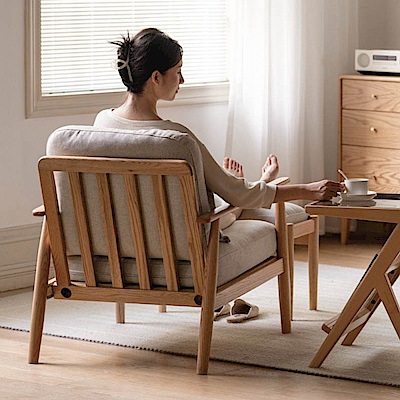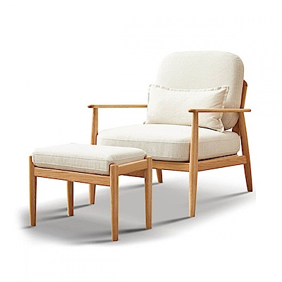 源氏木語柏林橡木原木色單人沙發椅+腳凳 Y83H04 米白色 (H014362858)