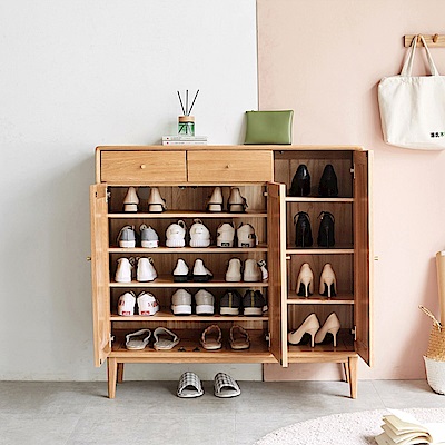源氏木語布拉格橡木原木色三門雙抽鞋櫃 Y84L03 (H014365801)