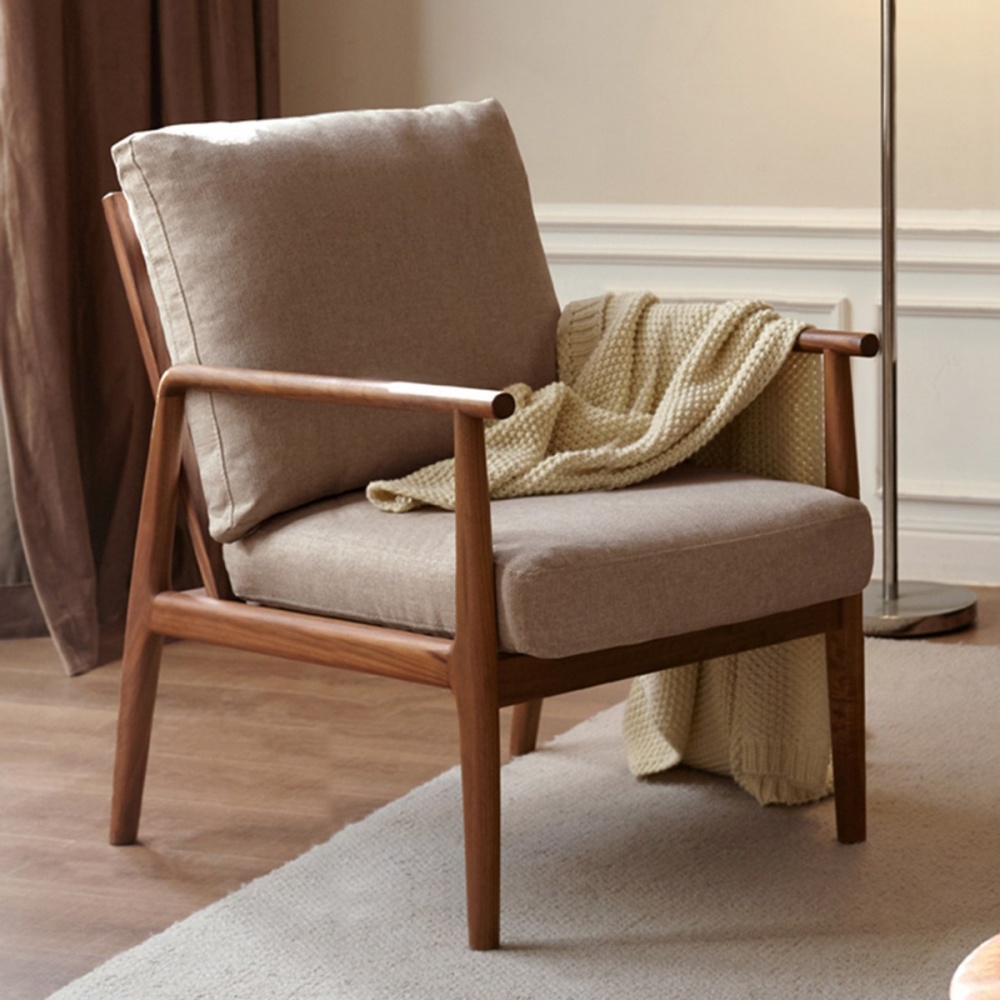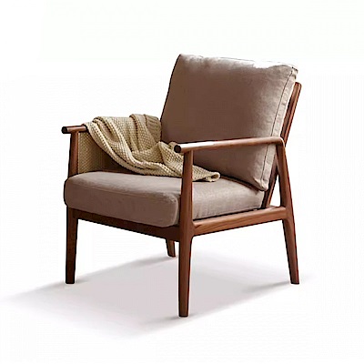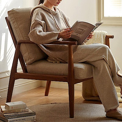 源氏木語莫奈黑胡桃木單人布沙發椅 K196H01 煙栗棕 (H014362862)