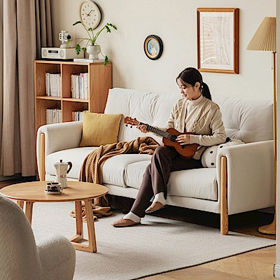 源氏木語奶油風貓抓布高背加大三人座布沙發 S03275 柔白 (H014384460) product image 1