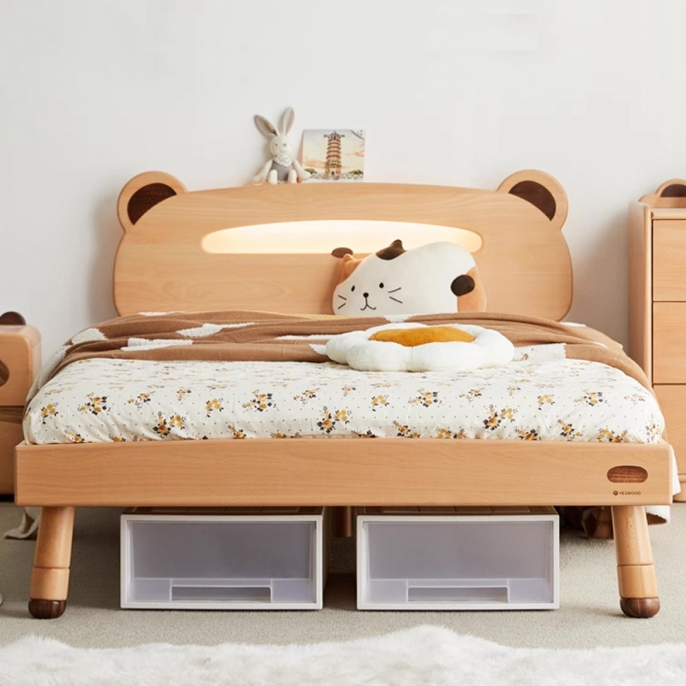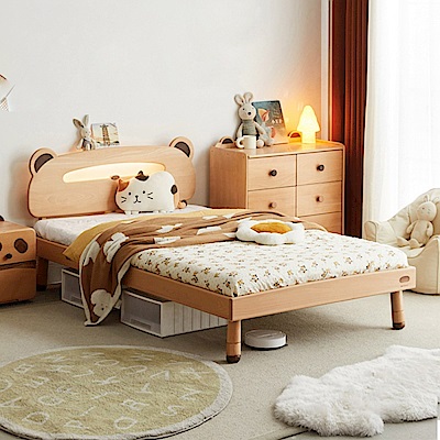 源氏木語小熊造型橡木夜燈兒童床架120x200 Y109B03 (H014371101)