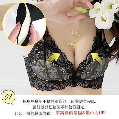 • 無鋼圈也能超爆乳 彈性蕾絲加強美溝維持力
