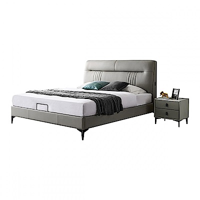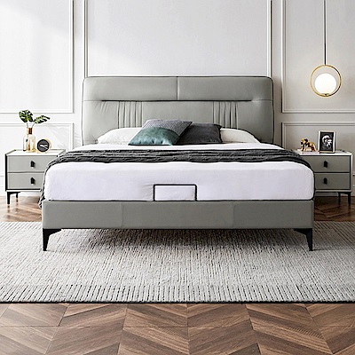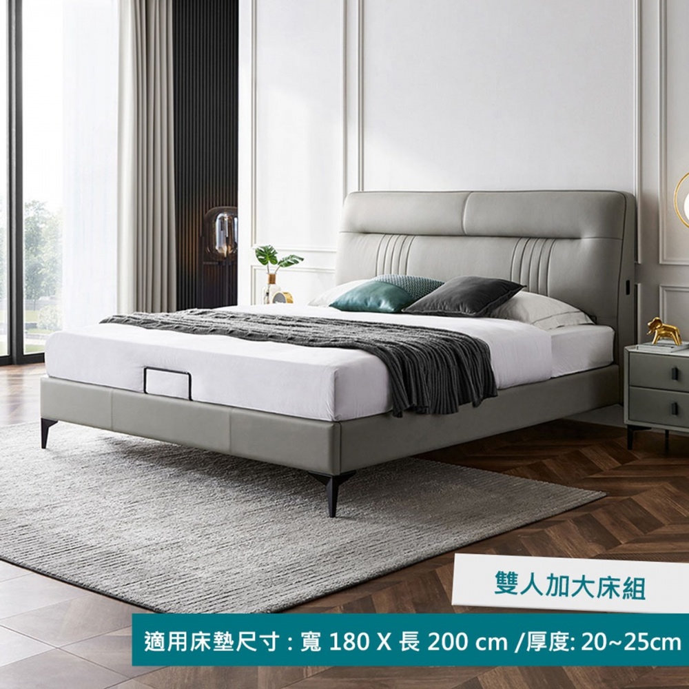 林氏木業義式精緻頭層牛皮雙人加大180x200床架 R333-霧灰色 (H014344255) product image 1