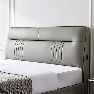 林氏木業義式精緻頭層牛皮雙人加大180x200床架 R333-霧灰色 (H014344255)
