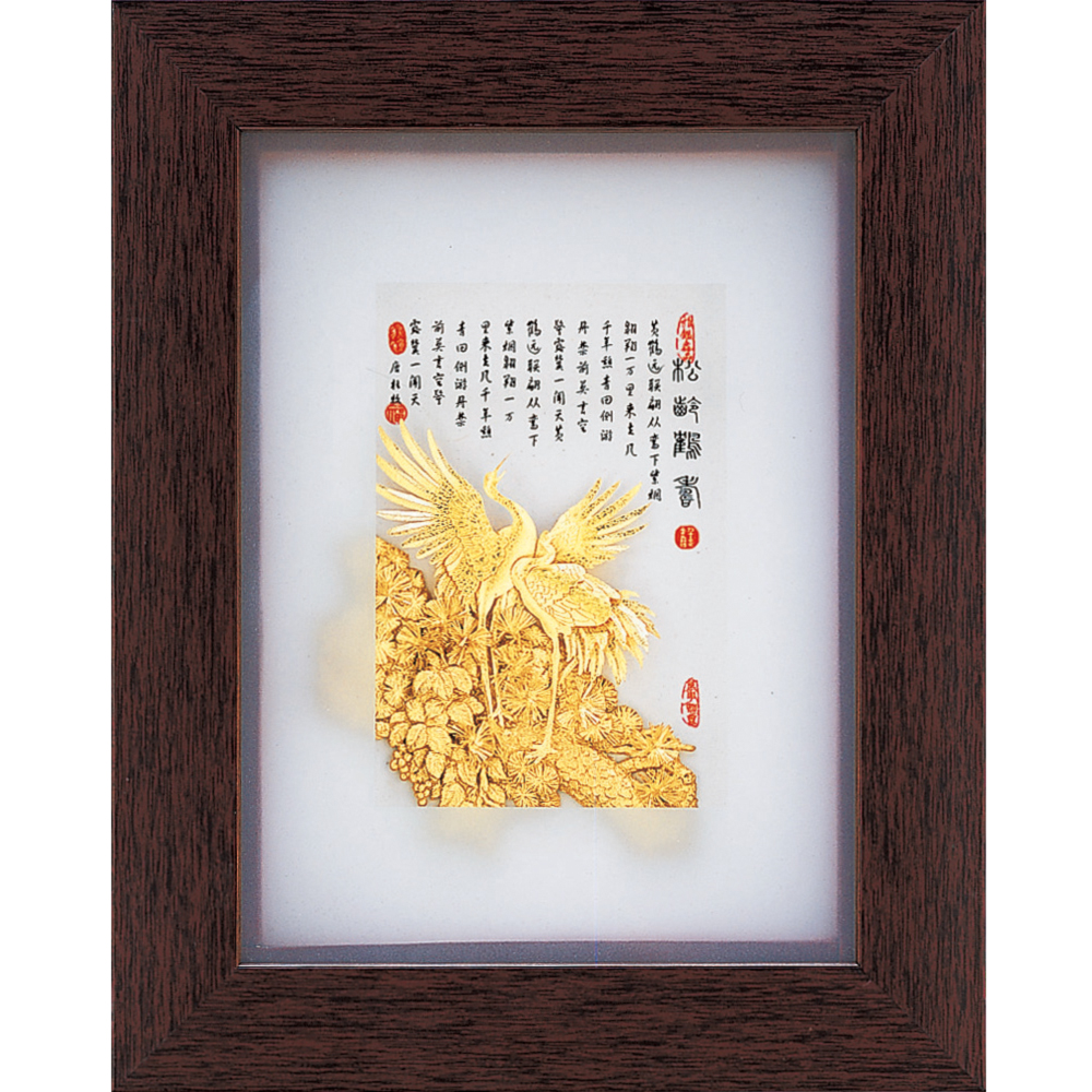 開運陶源  純金古香系列【松齡鶴壽】金箔畫