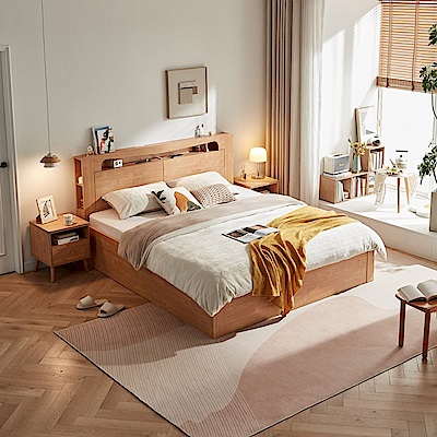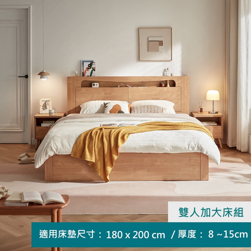 林氏木業自然清新暖光多功能收納雙人加大180x200掀床架 AU6A (H014364579)