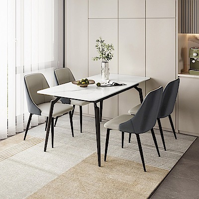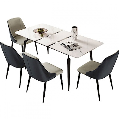 林氏木業輕簡伸縮岩板餐桌 LS663+餐椅 LS531 (一桌四椅)-黑色 (H014378862)