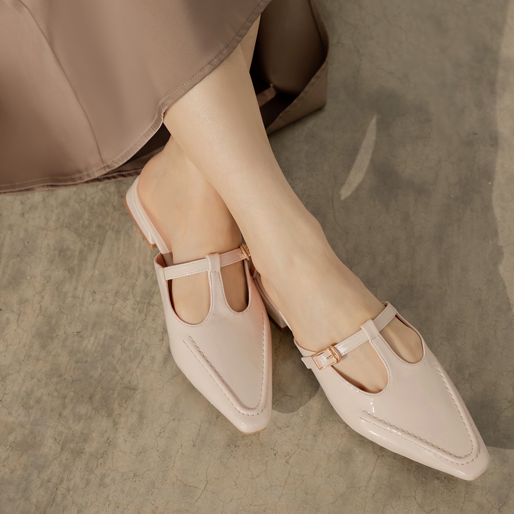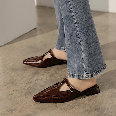 OB嚴選中大尺碼-優雅漆皮T字尖頭低跟半拖鞋《SA047》 product image 1