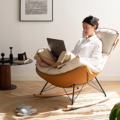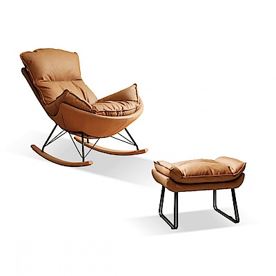 源氏木語蛋殼搖椅科技布單人沙發椅+腳凳 S0525 古銅黃 (H014362848)