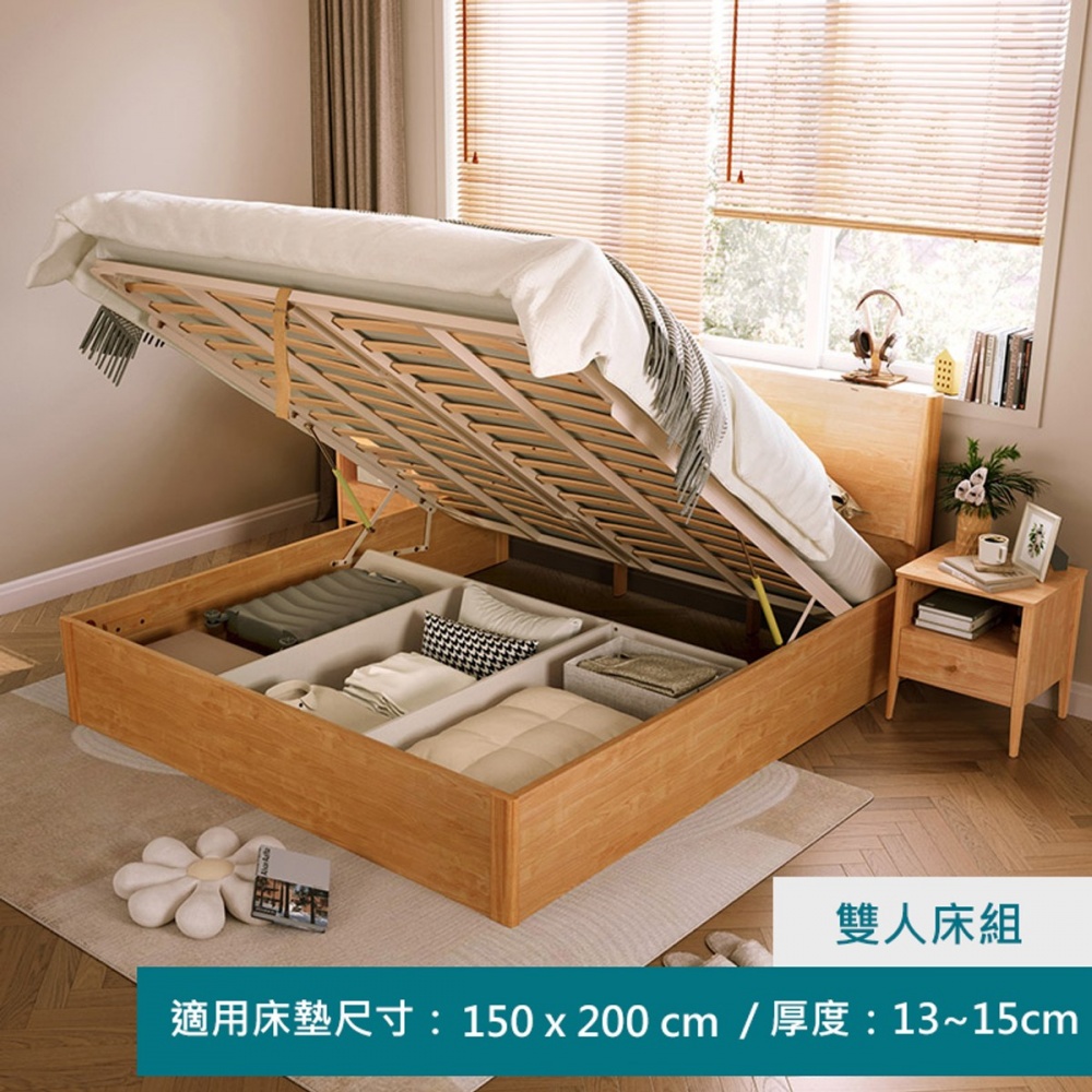 林氏木業北歐原木風雙人150x200收納掀床架 OU2A (H014372025)