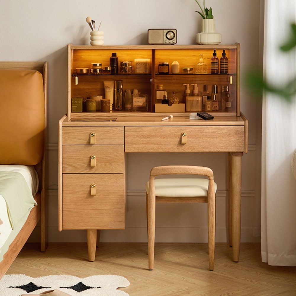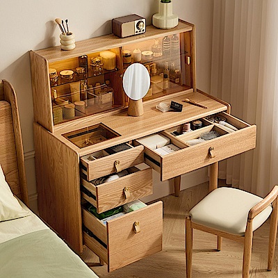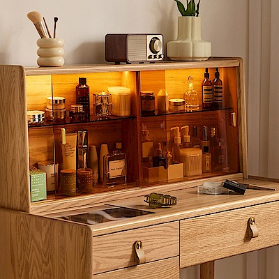 林氏木業好宅系列附玻璃上櫃實木1M化妝桌組 LH112 (附妝凳 LH112) (H014375232) product image 1