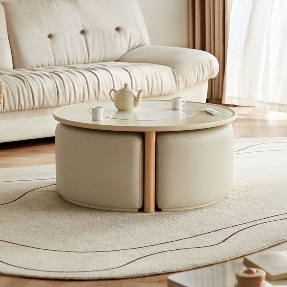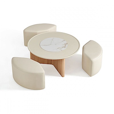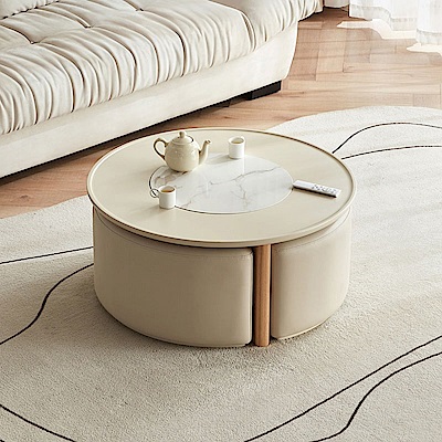 林氏木業奶油侘寂風岩板附凳茶几 NU3L (H014369251) product image 1