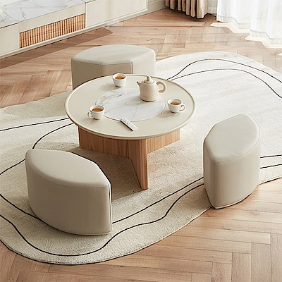 林氏木業奶油侘寂風岩板附凳茶几 NU3L (H014369251)