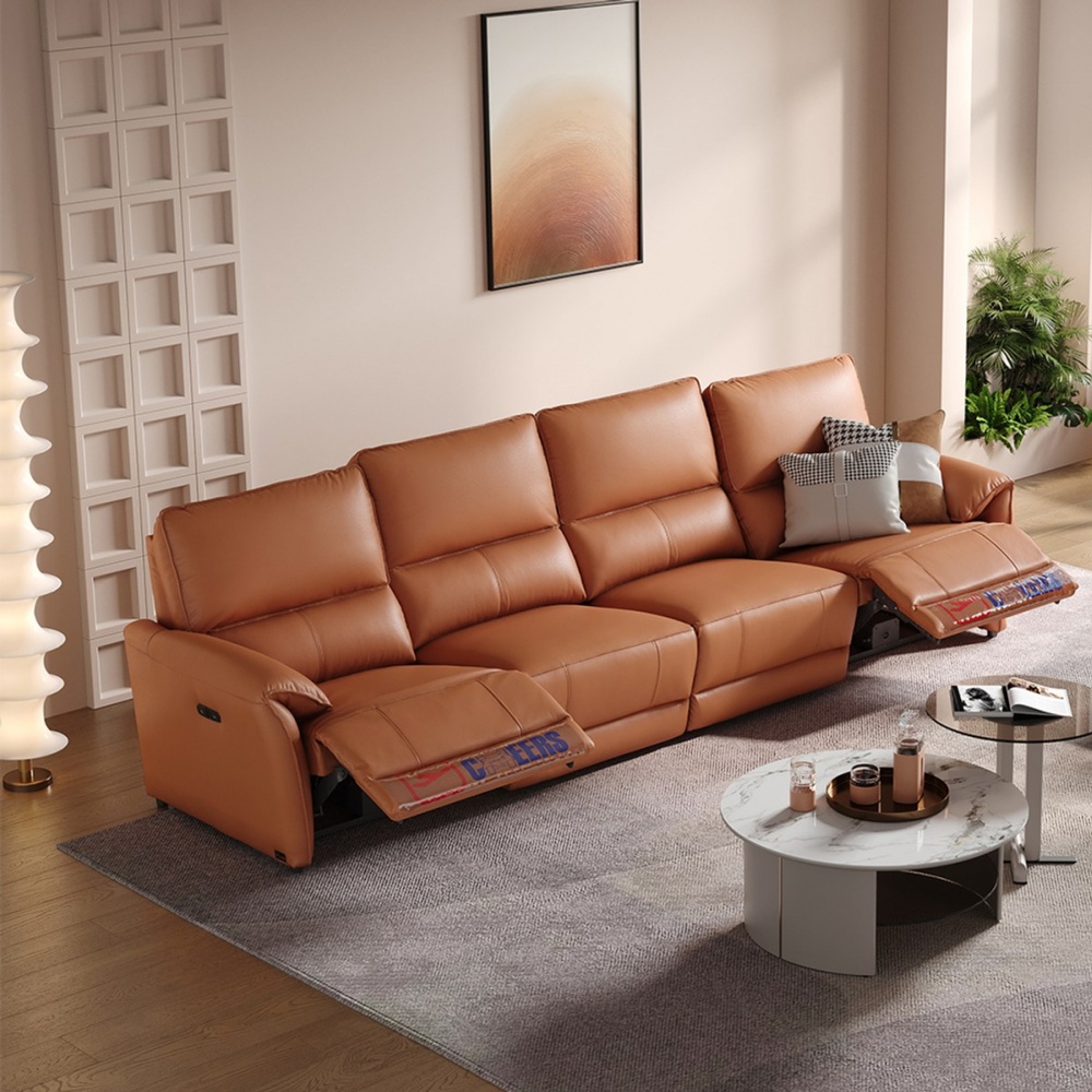 芝華仕頭等艙 頭層牛皮 四人零靠牆電動沙發組附USB 30328 赤霞橙 (H014387063) product image 1