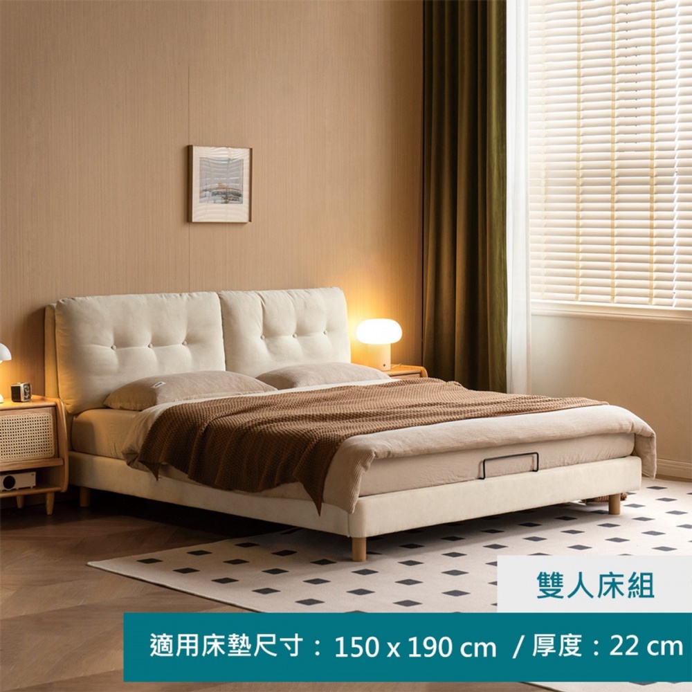 源氏木語雲朵奶油風實木布質雙人5尺床架(150X190) S07B205 (H014403556)