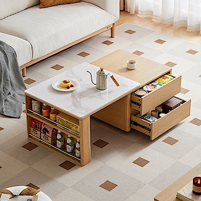 林氏木業北歐簡約二抽儲物伸縮岩板茶几組合 UM4L (H014397891) product image 1