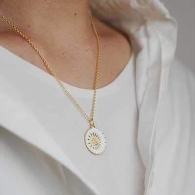 Georg Jensen Daisy 純銀鍍金 白琺瑯雛菊項鍊-18mm product image 1