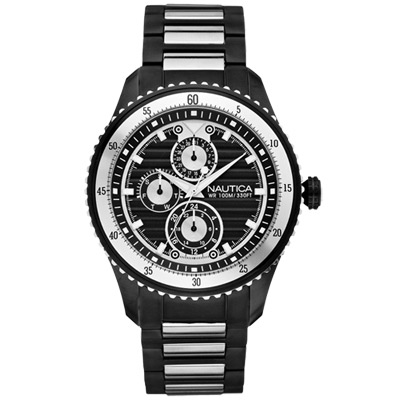 NAUTICA 戰神武裝三眼時尚腕錶-黑-NWA24517G-44mm