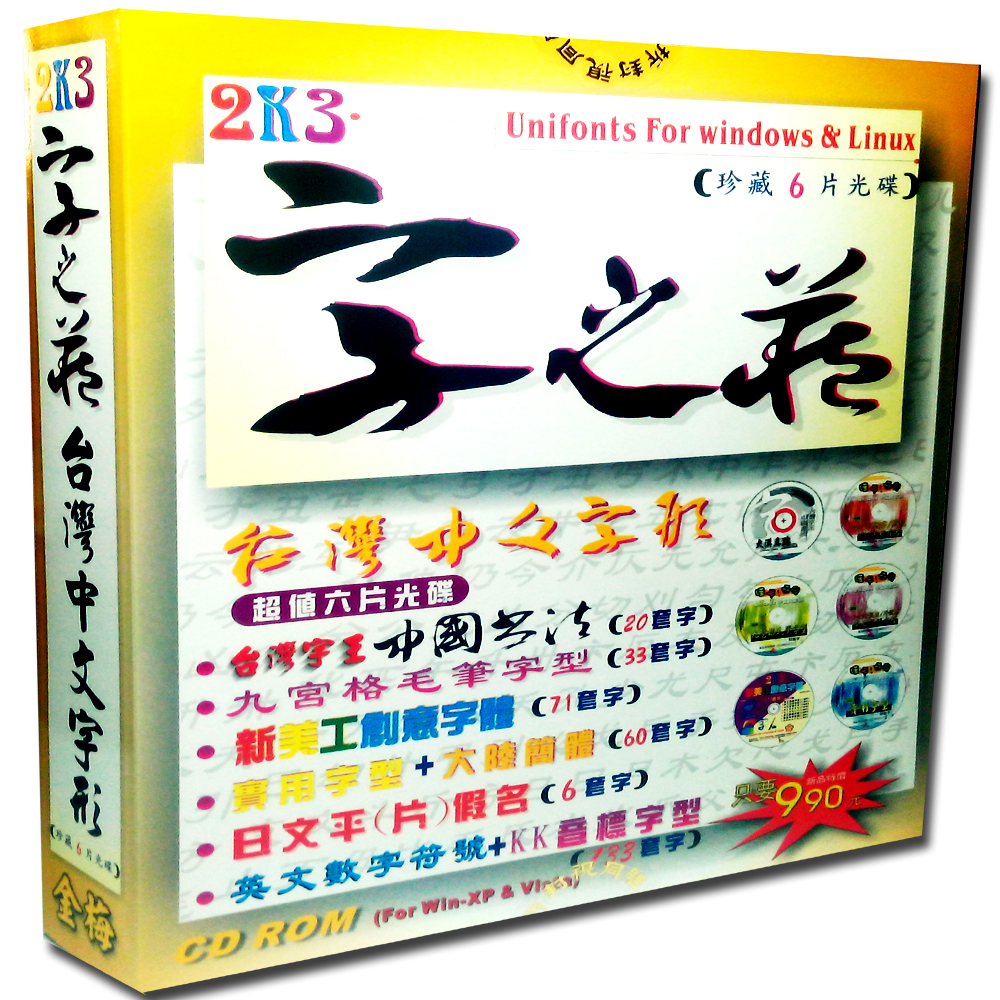 • 珍藏中國名家書法、九宮格毛筆、新美工字創意、 實用字型+大陸簡字、日本平(片)假名、英文數字符號+ KK音標(實用版及加強版)—共200多套字型。