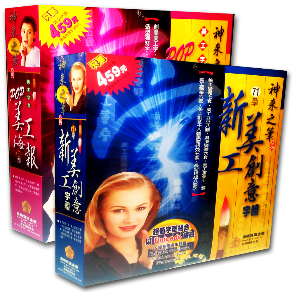 • 含POP美工海報字體大全及新美工創意字體兩片光碟,內容豐富,字體漂亮,操作簡單.