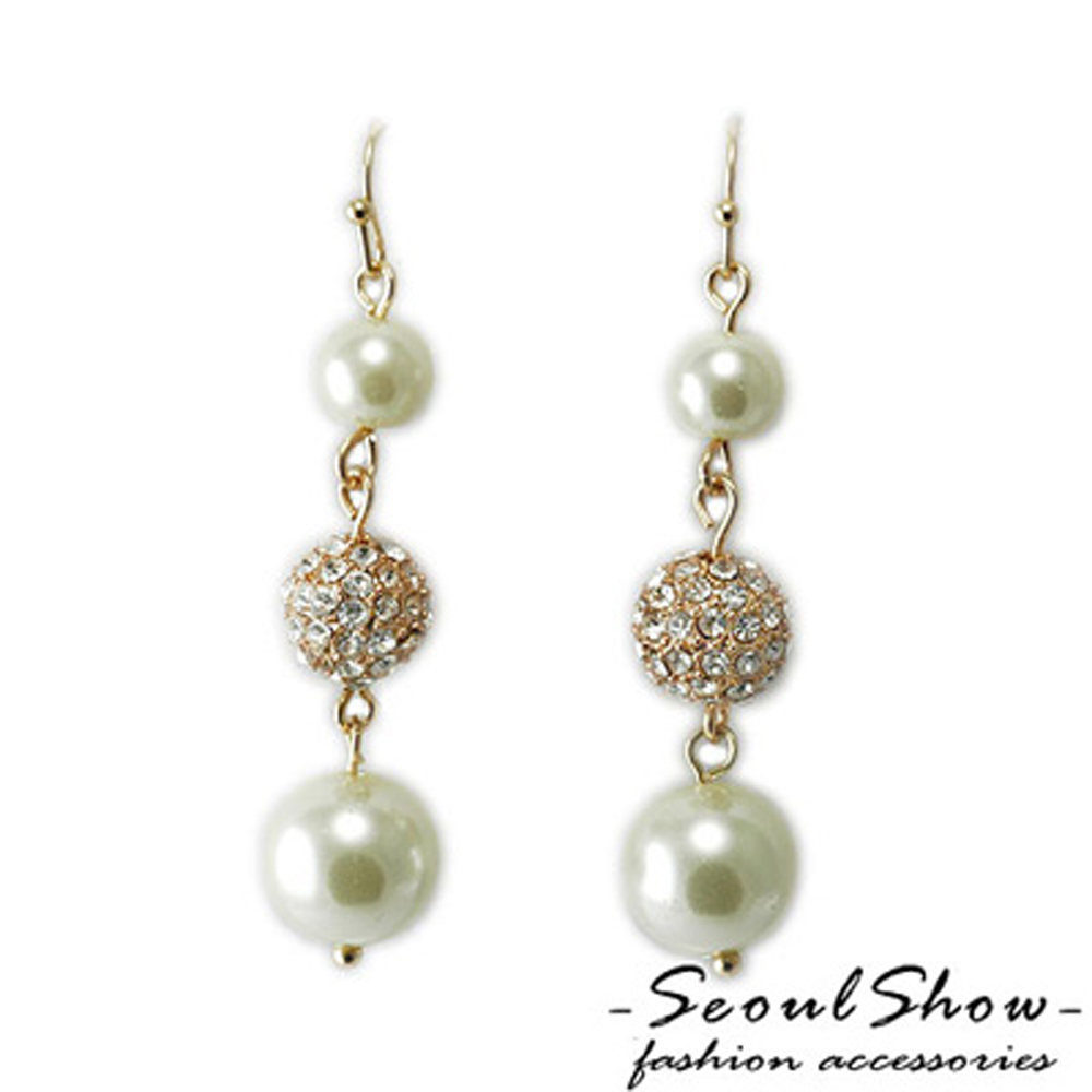 【Seoul Show】初戀粉色系 貝珠奧地利水晶耳環 product image 1