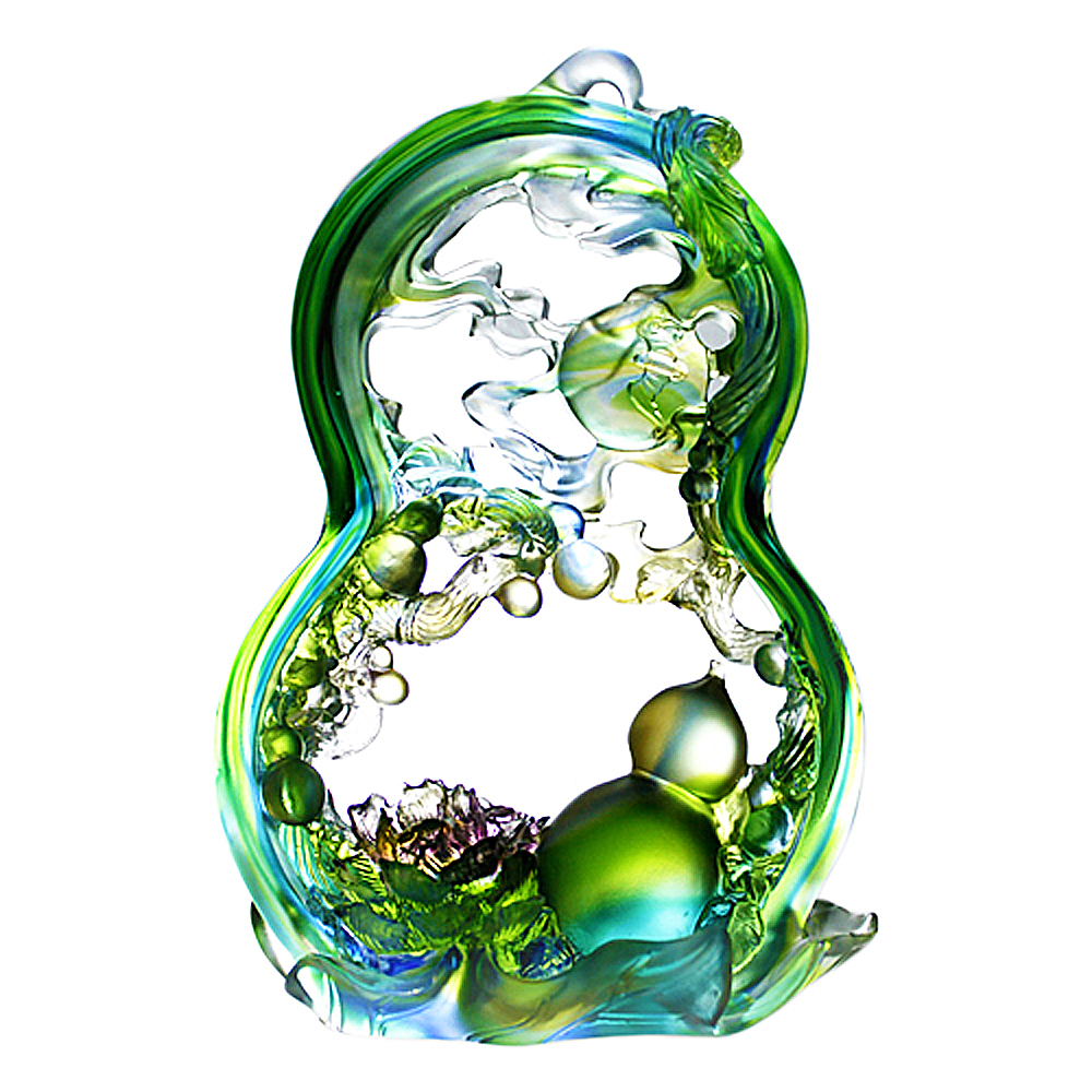 開運陶源 琉璃 福祿葫蘆【大富大貴鴻福齊天】附水晶台座 product image 1