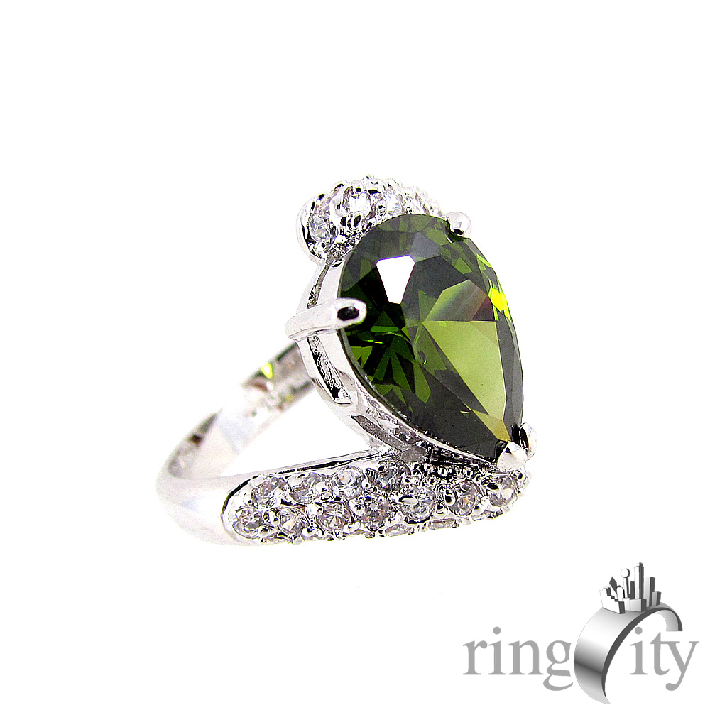 RingCity 祖母綠晶鑽色水滴造型戒