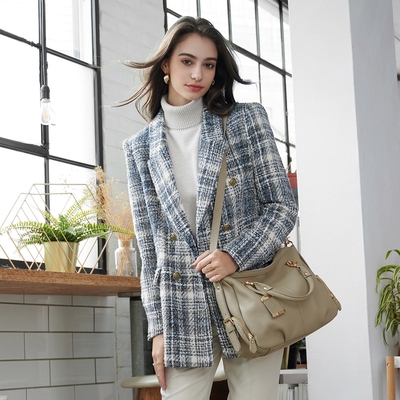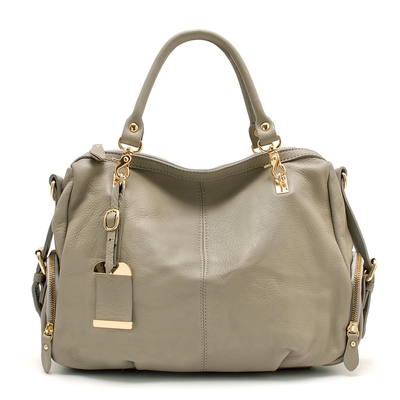 • 真皮五金掛牌+釦環提把